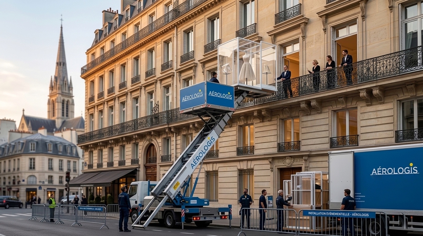 Paris est la capitale mondiale de l’événementiel, de la mode et du luxe. Entre les Fashion Weeks, les lancements de produits dans des showrooms éphémères et les réceptions privées dans des hôtels particuliers, la logistique est le moteur invisible de ces moments d’exception. Cependant, l’organisation d’un événement en étage dans le tissu urbain parisien présente des défis monumentaux. Comment monter un bar en marbre de 300 kg, un piano à queue ou des structures scéniques imposantes dans un appartement haussmannien sans ascenseur ou dont les escaliers sont classés ?